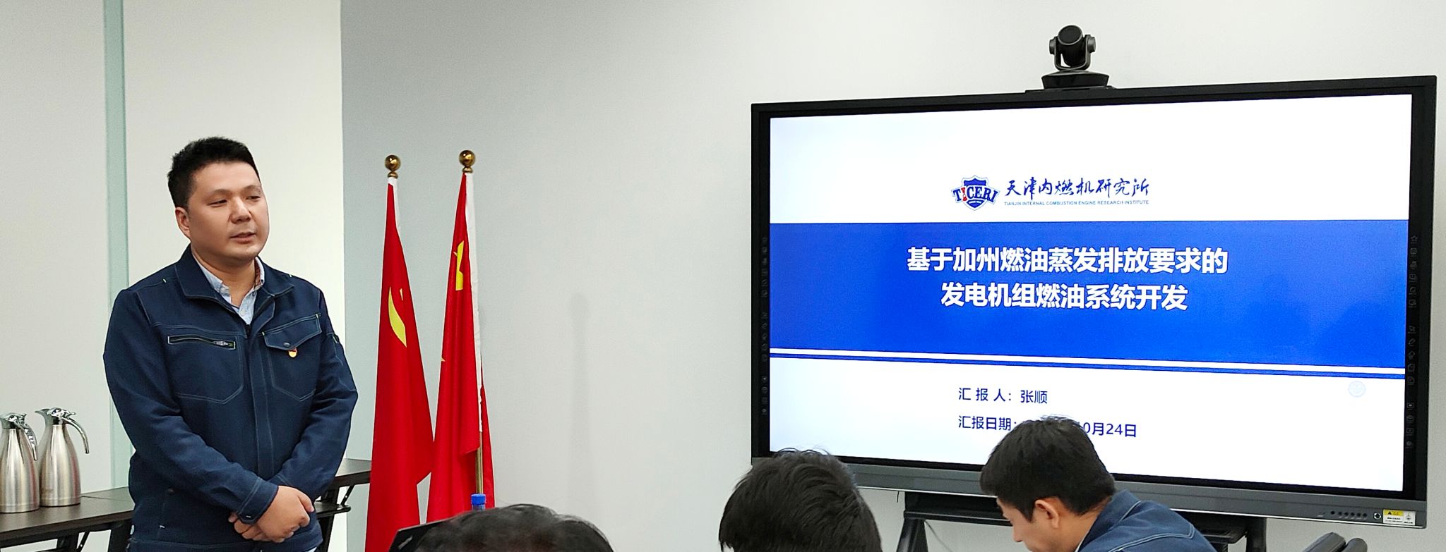 在课题汇报环节,小型动力设备研究中心认证部部长张顺就其课题《基于加州燃油蒸发排放要求的发电机组燃油系统开发》围绕项目背景、研究内容及技术路线、预期成果及总结等进行了系统阐述。该研究针对发电机组燃油系统存在的蒸发排放问题,创新性地提出了电磁阀控制、碳罐结构优化等解决方案,在保证成本可控的前提下,满足CARB2024排放标准。张顺部长通过大量试验验证,展现了研究成果的可重复性与应用前景。