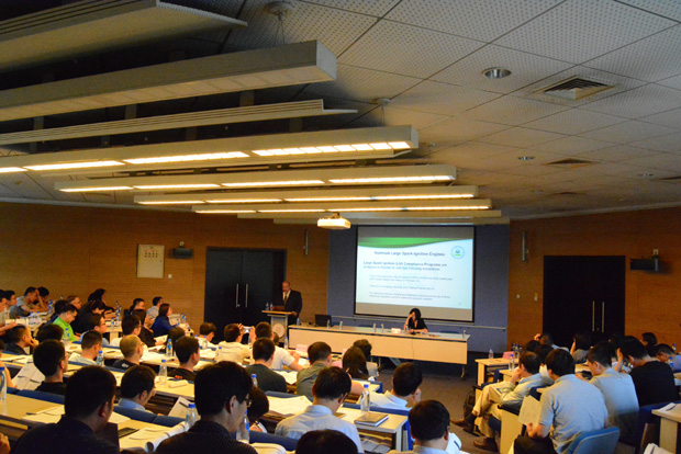 会议安排在美丽的天津大学校园内。来自中国摩托车行业及通用汽油机行业的上百位业界人士莅临会议。环保部污控中心倪红主任主持会议。副主任崔建祥致辞,对美国EPA认证专家拨冗参会表示衷心的感谢。EPA专家就小汽油机、船用火花点火和大型火花点火发动机以及摩托车和娱乐用车/发动机的符合性规程进行了详细讲解,就申请资料准备、试验样机(车)选择、获得认证后生产和销售中的注意事项作了介绍。所长刘欣致闭幕辞,回顾了研究所的发展历程,以及受环保部、工信部等国家部委的委托,在摩托车、通机节能减排方面所取得的成绩。