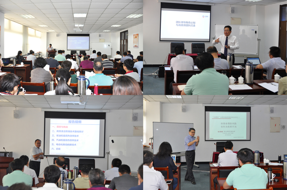 本次培训,聘请专业培训机构作了《团队领导角色认知和高绩效团队打造》的主题培训;邀请国内著名内燃机专家、天津大学内燃机燃烧学国家重点实验室尧命发教授作了题为《动力技术发展趋势》学术讲座;请内燃所签约律师事务所律师作题为《经济工作风险防范》讲座,并组织全体参会人员进行了“内燃所中长期发展规划”专项研讨。