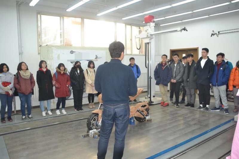 随后,同学们参观了油泥模型室、电动自行车、220千瓦发动机台架实验室和检测所的实验室。对电动摩托车设计研发流程、电动自行车的电机、电控系统以及各个实验室的用途、适用范围和操作方法都有了系统的了解。