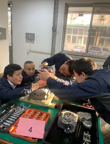 本次技能大赛主要内容是行业用量最大的CG150发动机拆装。准备工作前后历经1个半月。所工会组织了专题现场培训,发动职工利用业余时间进行练习,最后由来自七个部门的年轻职工,组成了四个代表队,参加了比赛。比赛现场气氛热烈,选手们全神贯注,你追我赶,迅速而精准完成了发动机拆装的各项规定动作,活动获得圆满成功。