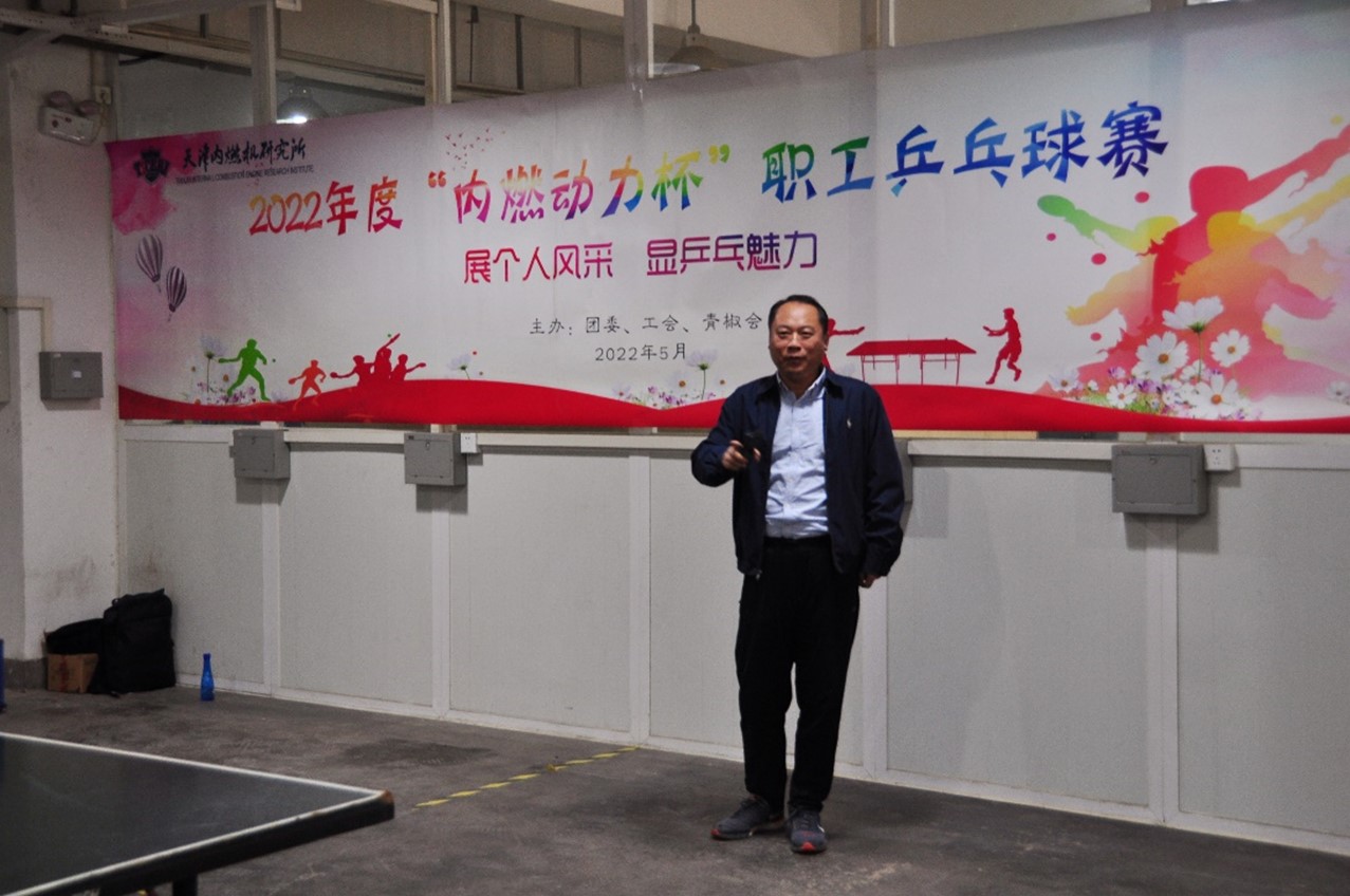 5月13日下午18:00,内燃机研究所2022年度“内燃动力杯”职工乒乓球赛正式拉开帷幕。所党委书记杨志永和副书记包铁成来到现场,为所有参赛队员鼓劲加油。赛前,杨书记寄语全体参赛职工充分利用乒乓球友谊赛等活动平台,广泛交流,增进友谊;展现积极向上、健康活跃的精神风貌,结合“迎盛会、铸忠诚、强担当、创业绩”主题学习宣传教育实践活动,将顽强拼搏的精神从赛场带回到实际工作岗位当中,为内燃所的事业发展贡献自己的力量。