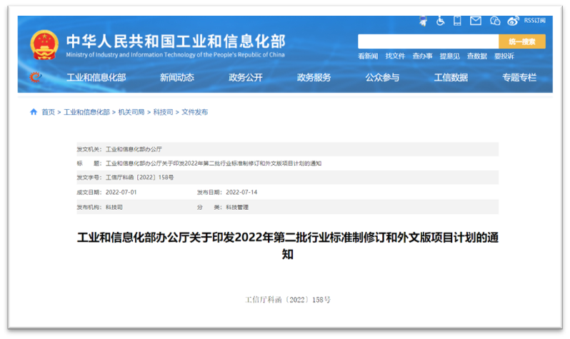 近日,工业和信息化部办公厅下达了《关于印发2022年第二批行业标准制修订和外文版项目计划的通知》(工信厅科函〔2022〕158号)。其中,于今年6月份顺利通过答辩的由天津内燃机研究所牵头制定的2项通机行业标准与1项行标外文版正式列入计划。