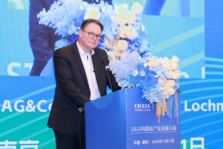其次中国内燃机工业协会会长马常海致辞。马会长围绕2025内燃机产业发展大会主题“绿色、智能、协同、创新” ,对内燃机行业百年历程的回望与未来趋势的展望,主要从回望百年辉煌征程,筑牢产业发展信心根基,内燃机行业取得的成就和贡献;下一步在挑战与机遇中找准产业转型的战略支点;未来聚焦“绿色、智能、协同、创新”,共同谱写高质量发展新篇章。新征程上,中国内燃机工业协会将一如既往地发挥好桥梁纽带作用,凝聚行业共识,维护行业秩序,为企业创新发展营造更优环境。以绿色为方向,以智能为支撑,以协同为保障,以创新为动力,共同锻造一个更高质量、更可持续、更具竞争力的中国内燃机产业,为支撑国家现代化产业体系建设、实现“双碳”战略目标作出我们这一代内燃机人更大的贡献!