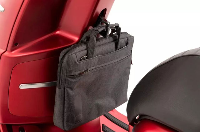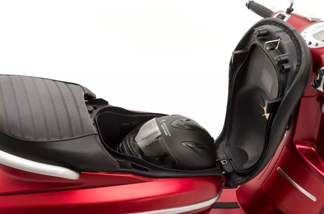 内挡风留有两个可锁式隐形储物箱。左侧的储物箱是注油口,右侧的储物箱配置12V充电接口,可为电子产品充电。折叠式隐藏挂钩,使储物、携带物品也变得时尚。