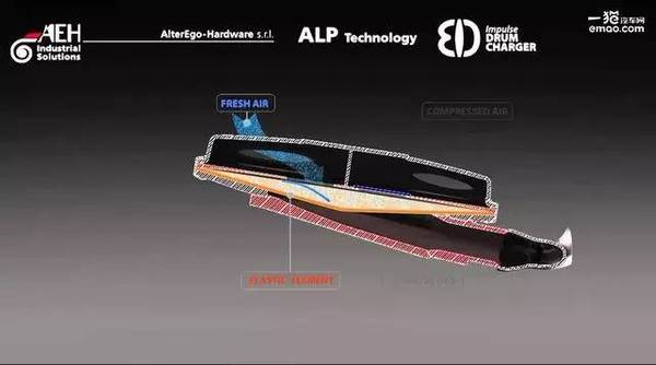 不过最近来自意大利的科技公司Alter Ego,发明了一套名为Drumcharger鼓式增压系统,结构非常简单,体积轻巧容易维护,整个增压系统完全没有机械运作结构,也可以不需要电子控制系统辅助。整个装置只由塑料外壳、金属薄膜等主要构成,因此成本非常低廉。