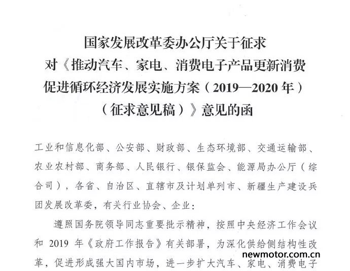 近日,国家发改委面向各部位、省市和行业协会、企业发函征求意见,为进一步推动汽车、家电和消费电子产品更新消费、促进循环经济发展献言献策。