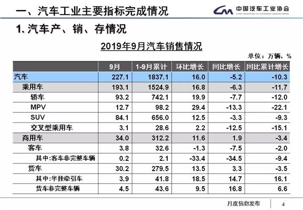 ♦乘用车9月销量降幅小有缩窄 商用车表现稍好