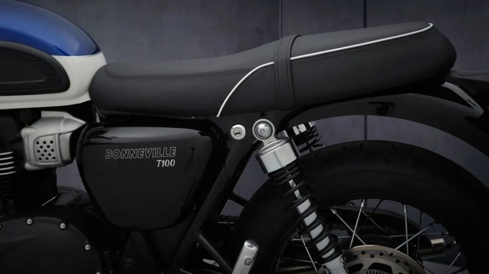 新T100采用了更高规格的41mm前叉,以及两个后减震。标配可关闭的牵引力控制,座椅下方有USB接口,可以选配巡航控制系统。