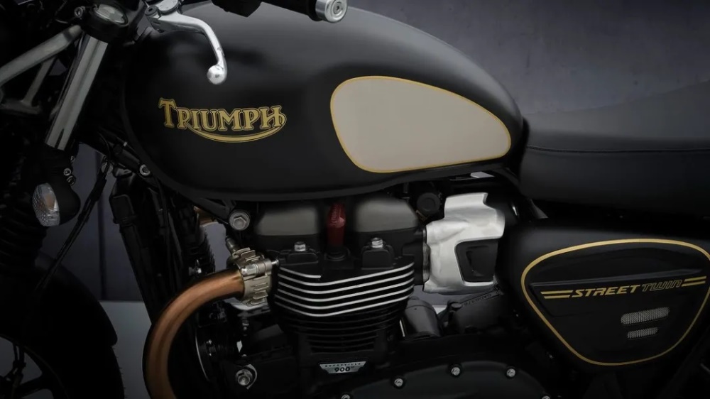 并且推出了Street Twin Gold line限量版,仅生产1000辆,在Matte蓝宝石黑漆上镶嵌了手工金针条纹的凯旋徽标。用镂空拉丝铝制成,用了大量的金色包围,甚至车轮也得到了金色销钉剥离处理,新的侧面板包括定制的金色Street Twin徽标。