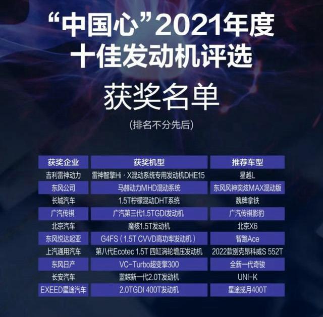 1月8日,“中国心”2021年度十佳发动机评选结果正式揭晓,共计7款自主品牌发动机和3款合资品牌发动机入选。