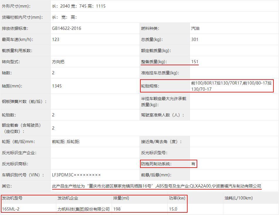 发动机现在由江门气派摩托车有限公司生产,经查是力帆的子公司,12.2kW的最大功率比现款提升了2kW,152kg的整备质量比现款增加了9kg,轮胎规格保持不变。