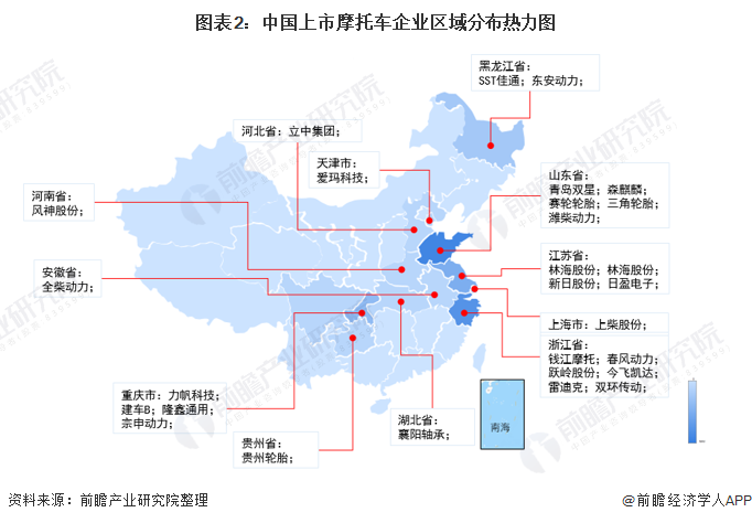从我国上市摩托车企业区域分布来看,我国摩托车企业主要分布在东部沿海地区和中部川渝地区。