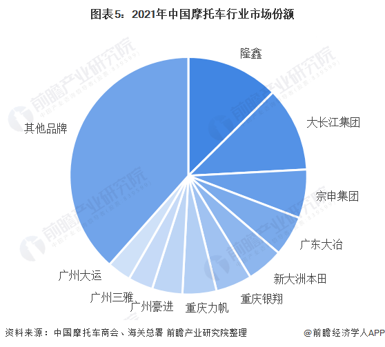 2、中国摩托车行业市场份额:大长江集团市场份额较大