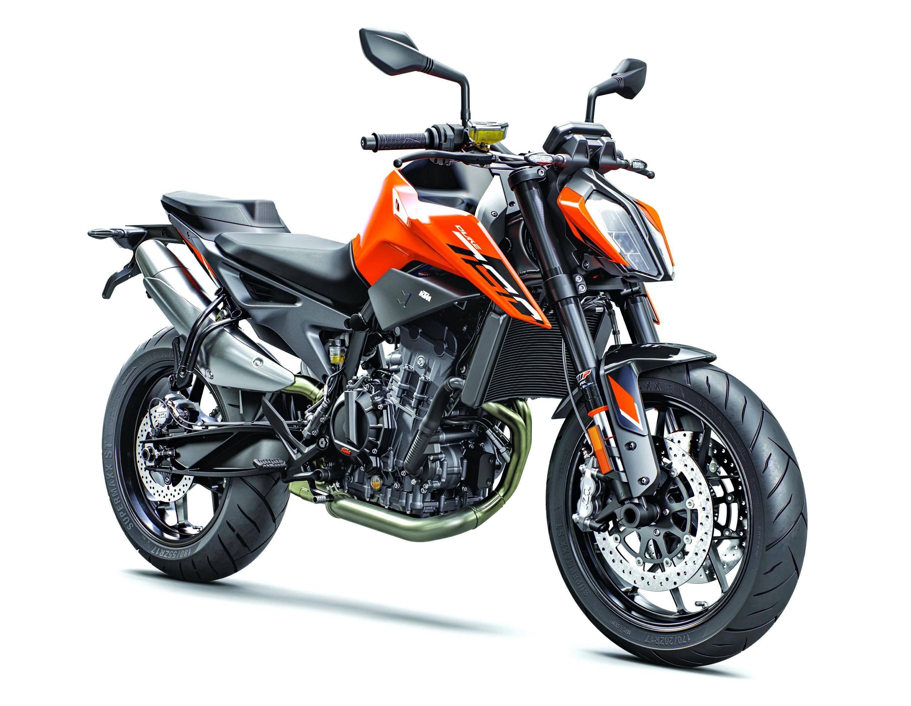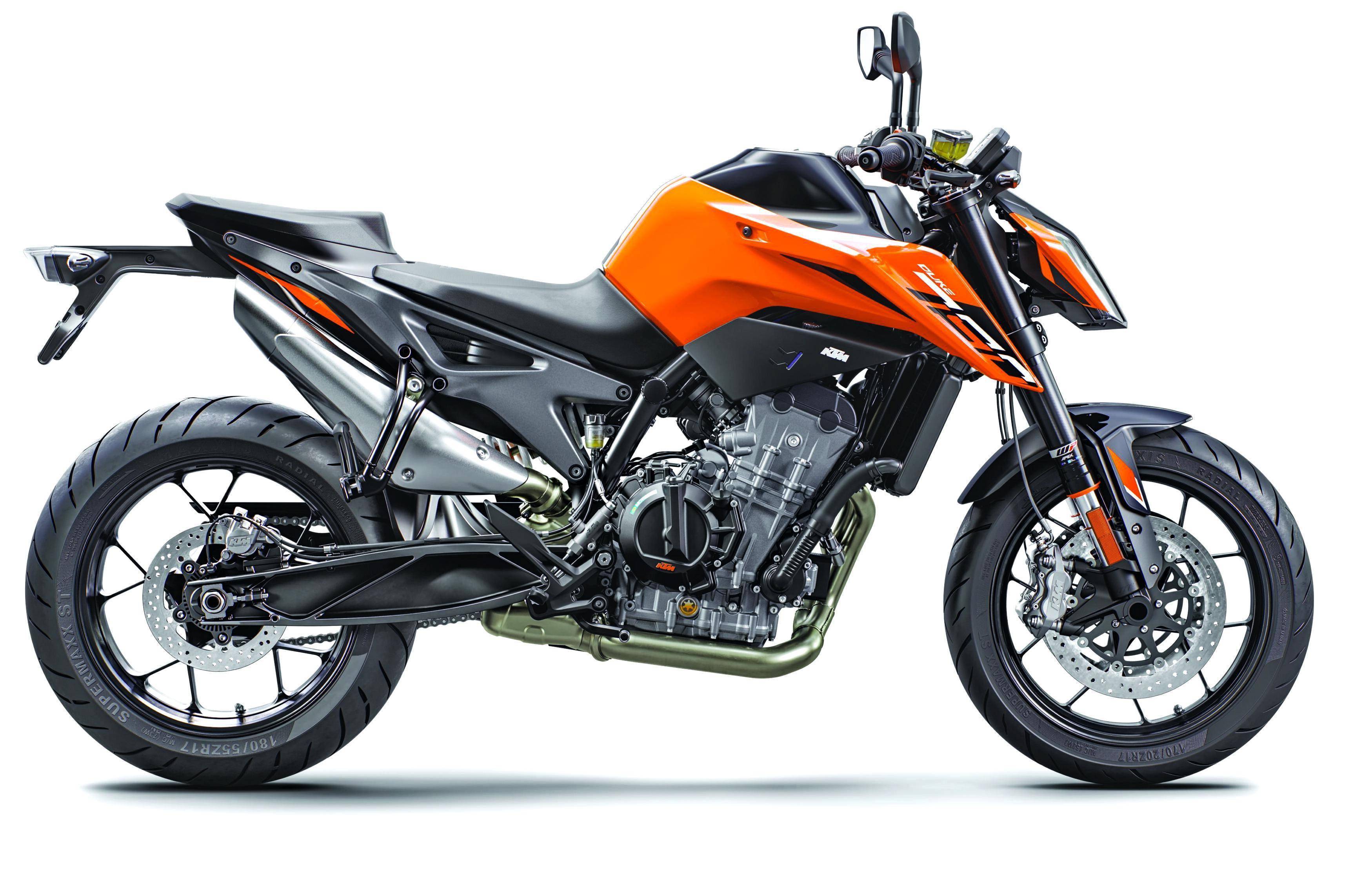 KTM 的 790 Duke 在 2017 年首次公开、次年正式上市。该车搭载一副水冷四冲程直列两气缸、DOHC 每气缸四气阀的发动机,缸径、行程为 88 mm x 65.7 mm,高达 12.7:1 的压缩比,排气量 799 cc,配备了六档的变速齿轮箱、PASC 滑动式离合器,标准款的最大动力输出为 77 kw/约 105 匹(国内版的最大动力输出为 104.7 匹),欧洲 A2 款的最大动力输出为 70 kw/约 95 匹。车体方面,采用一副钢管式的车架,140 mm 行程的倒立式前叉、150 mm 行程的单筒后减震,数字式的仪表板,Duke 家族脸谱风格的前大灯等。