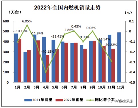 2022年11月内燃机行业销量环比、同比均下降,累计降幅较上月略有扩大。