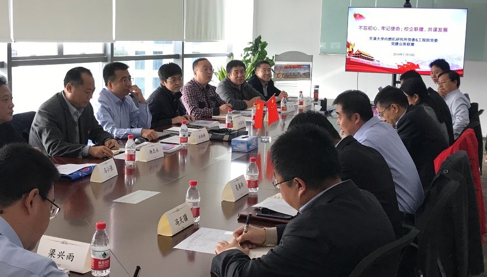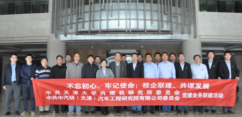为深入推进“不忘初心、牢记使命”主题教育开展,2019年11月13日,天津大学内燃机研究所党委书记杨志永、所长祖炳锋、副所长白富强等一行到访中汽研(天津)汽车工程研究有限公司,与中汽研工程院党委以“不忘初心、牢记使命;校企联建、共谋发展”为主题,开展党建业务联建活动。受到了中汽研工程院党委书记、院长高继东,党委副书记、总工程师马杰,第四开发部党支部书记、主任李双喜等人的热情接待。