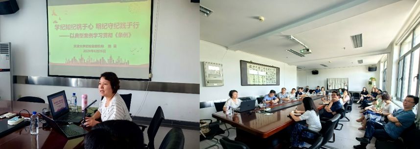 张蕾书记梳理分析党的纪律建设发展历程,运用大量的案例,深刻分析了各个历史阶段党对纪律建设的政治重视、持续探索、不断实践以及现实意义,系统阐释了学习贯彻条例的若干关键点以及“六大纪律”的条款要素,号召各级党员干部要重视解决“不上心、不了解、不掌握”的突出问题,弄明白能干什么、不能干什么,做到学纪、知纪、明纪、守纪,始终忠诚干净担当;根据出版社和内燃所的经营特点,她特别引用与《国有企业管理人员处分条例》相关的警示事例,深入细致讲解经营性单位党员干部如何在实际工作中筑牢思想长城、严守法纪之界,以扎实严谨的工作将党纪学习教育融入事业发展之中,促进国有资产的保值增值,为天津大学双一流建设贡献力量。
