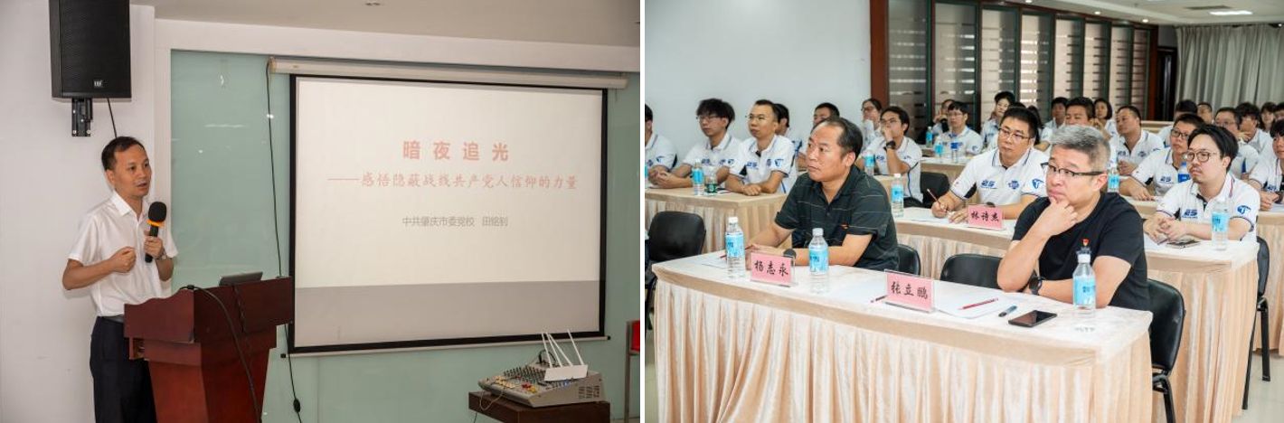 广天院邀请了中共肇庆市委党校市情研究中心副教授、肇庆党史学习教育市委宣讲团成员田铭钊同志,以《暗夜追光——感悟隐蔽战线共产党人信仰的力量》为题,为广天院的同志们带来了一场触动心灵、发人深省的辅导报告,他结合历史与现实,通过鲜活的事例和深入浅出的讲解,让每一位在座的学员们都深刻感受到信仰的力量。