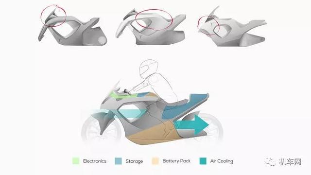 摩托车传统油箱的位置则是一个巨大的触摸屏,骑行时的相关驾驶数据都能在触摸屏显示出来,骑行导航指令也可以在触摸屏上显示以及实时控制。