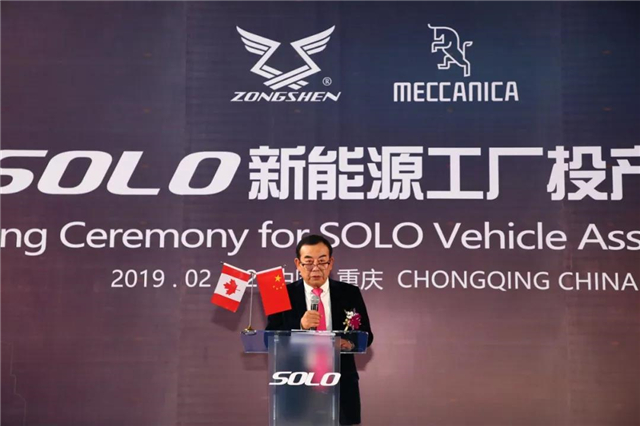 2019年2月22日,宗申产业集团旗下宗申机车SOLO新能源工厂投产仪式在宗申工业园隆重举行。