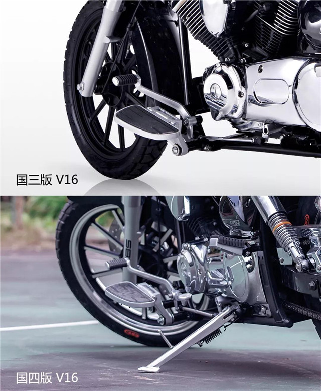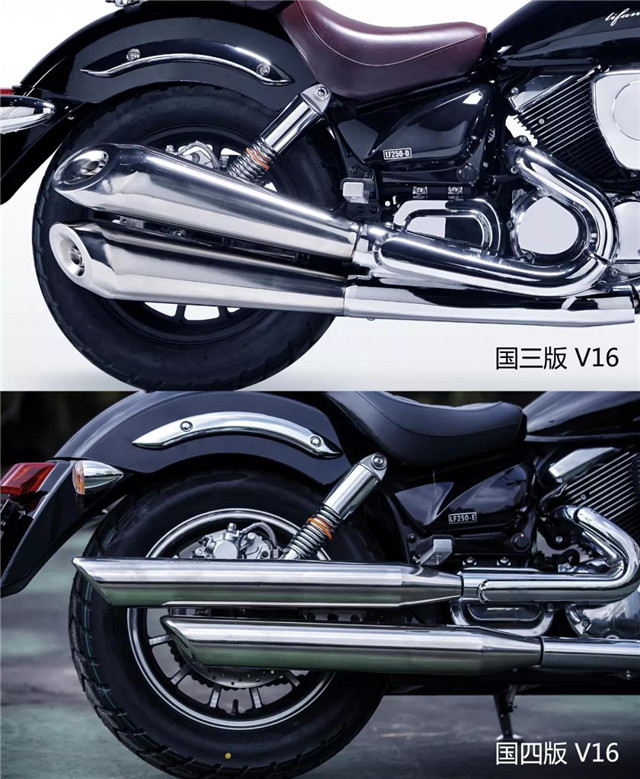 考虑到部分摩友不喜欢国三版V16“香肠嘴”造型的消声器,国四版V16特对消声器做了改进。外形上,消声器回归最经典的直筒设计,复古经典贯穿全车。