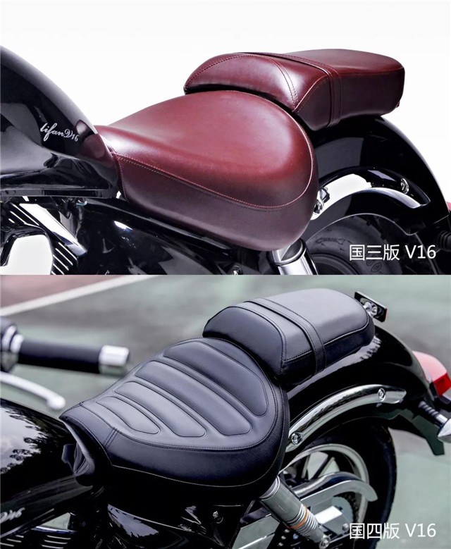 国四版V16采用分体式坐垫设计,前后包围设计,保护更到位。坐垫采用合成革,环保材质健康舒适,搭配高密度复合海绵,不易起皱,不易变形。