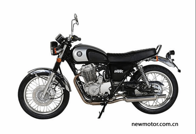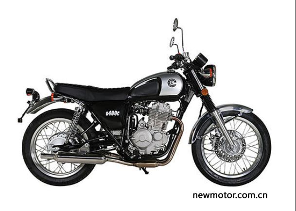 而从外形来看, G400C的线条让人想起雅马哈SR 500。大容积的水箱,水平座垫和前后镀铬金属挡泥板,此外还有圆形大灯和大转向灯,没有LED技术。110毫米行程的传统前叉带有波纹管,后座由大面积镀铬的弹簧减震提供支撑。