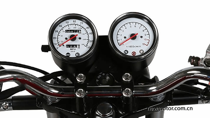 同时,该车还配有辐条轮,前轮直径19英寸,后轮18英寸。带有280毫米的前单盘碟刹系统,后轮上有一个160毫米的鼓刹系统。采用经典的双圆形仪表,显示转速和速度。