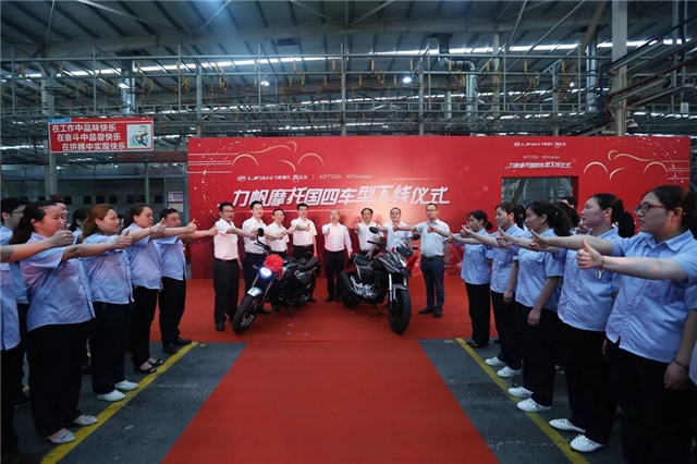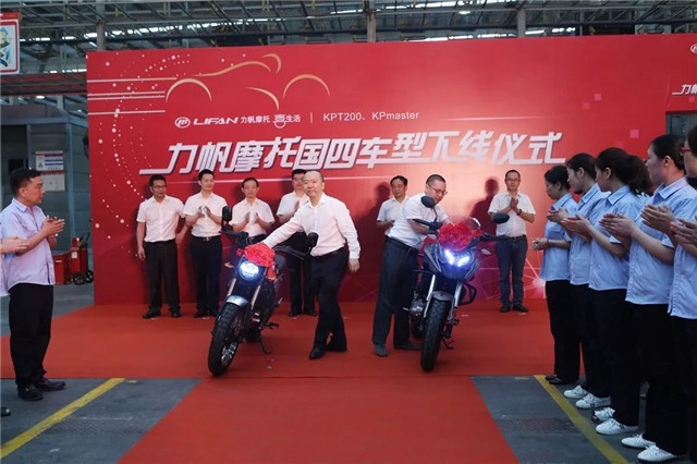 对于国四标准,力帆摩托一直非常重视。当日,力帆集团常务副总裁杨波、总裁助理孙立景、李龙,以及摩托车事业部总经理袁勇和摩托车研究院院长李晓灵等领导出席了国四车型下线仪式。