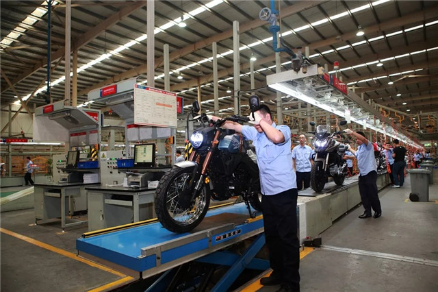 2018年5月28日,两辆获得国四车型公告的力帆摩托车缓缓驶下生产线。它们的下线,意味着力帆摩托提前进入国四标准摩托车制造行列。此时,距离国四标准的实施尚有一个月的时间。