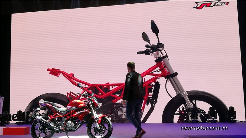 第二款新车,是贝纳利T N T150S,从外观来看,该车采用了新的设计语言,不像贝纳利以往车型那么线条感十足,而是更加圆融饱满。