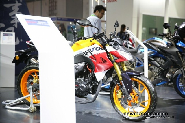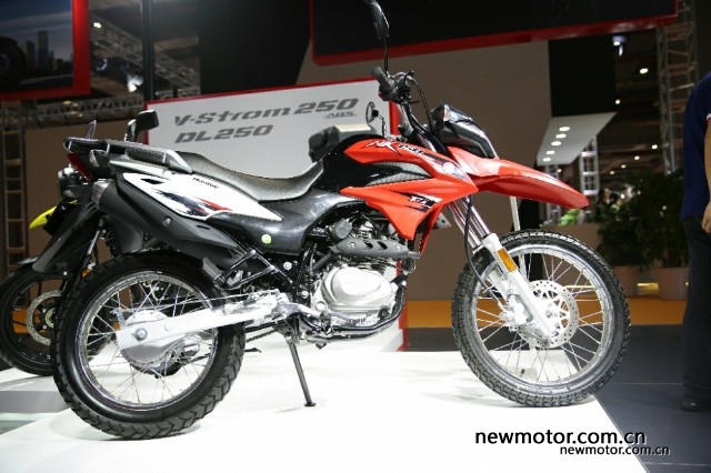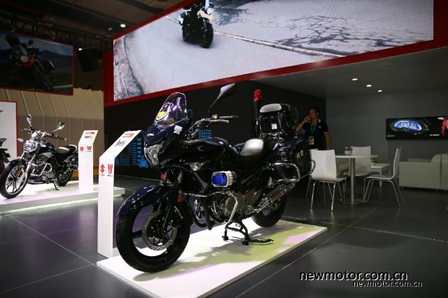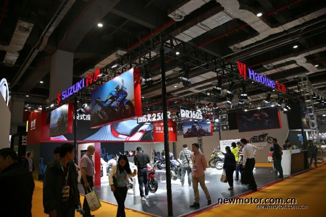 接着来看看豪爵铃木展台,本次没有大家期待的豪爵300,也没有江门展上露脸的GSX750,不过DR160和NK150还是来了的。