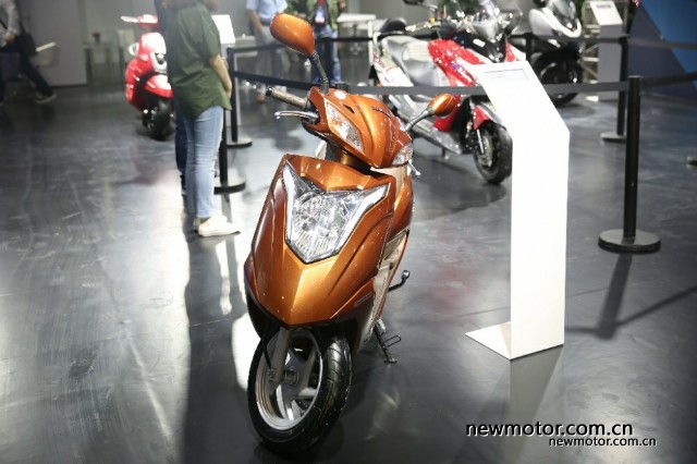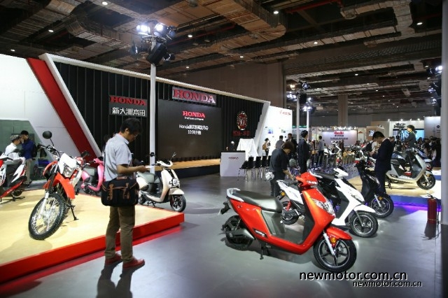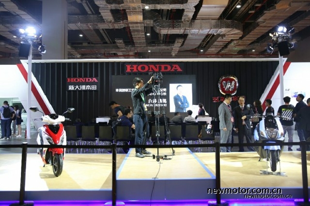 本田的展台是五羊本田和新大洲本田一起搭建的,现场大部分为在售车型,踏板车居多,以及还会发布一款高颜值电动车。大家可以期待一下。