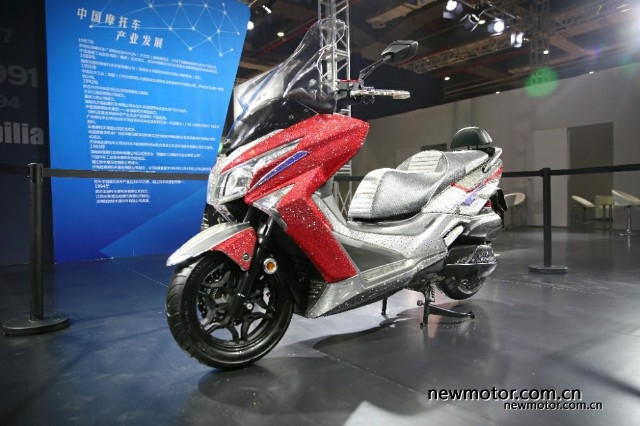 光阳展台,规模很大,并且现场展示了不仅有AK550等明星车型,还有倒三轮等概念车型,现场用红布挡住的是光阳会在展会期间发布的3款新车,各有亮点,具体发布内容关注牛摩网的持续报道。
