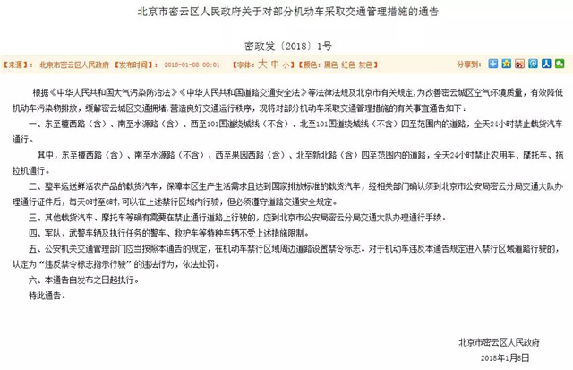 理由:为改善密云城区空气环境质量,有效降低机动车污染物排放,缓解密云城区交通拥堵,营造良好交通运行秩序。