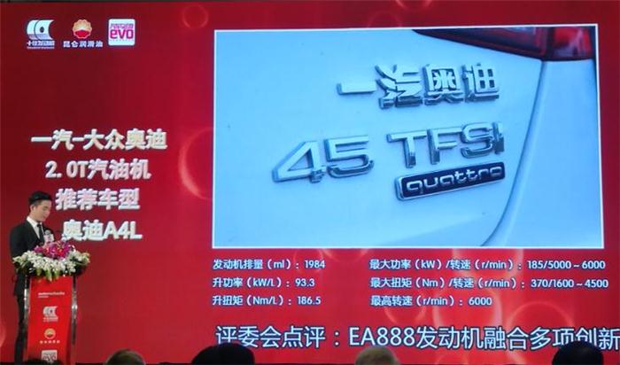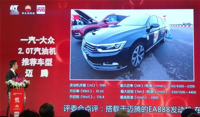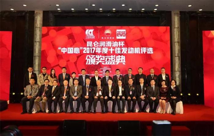 2017年11月30日,昆仑润滑油杯“中国心”2017年度十佳发动机颁奖盛典在上海扬子江万丽酒店举行。来自一汽-大众、一汽-大众奥迪、上汽大众、一汽丰田、广汽丰田、长安马自达、上汽乘用车、上汽通用别克、长城汽车、长安汽车、江淮汽车、吉利汽车共12家汽车企业的10款发动机荣获“中国心”2017年度十佳发动机称号。其中,一汽丰田和广汽丰田共用一款发动机;来自一汽-大众和一汽-大众奥迪的两款2.0T发动机都源自大众集团,整体结构相似,故同样归属为一个奖项。江淮汽车、上汽乘用车两家获奖企业还向高校捐赠了发动机,助力产学研合作。