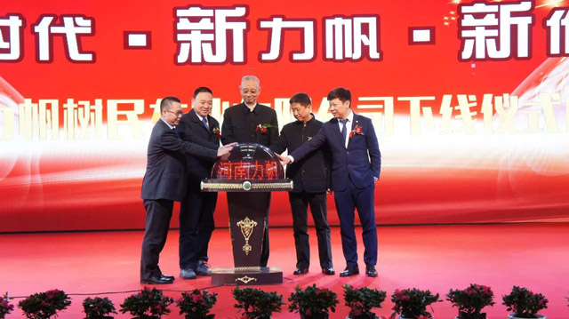12月16日,河南力帆树民车业有限公司首批产品正式下线。力帆创始人尹明善,力帆集团董事长牟刚、总裁马可、常务副总裁杨波、副总裁郝廷木等高层领导远赴河南,与河南省平顶山市人大常委副主任兼叶县县委书记古松、叶县县长徐延杰、叶县产业集聚区主任张小德,以及河南力帆树民车业有限公司各配套厂商代表及经销商群体共同见证这一历史性时刻。