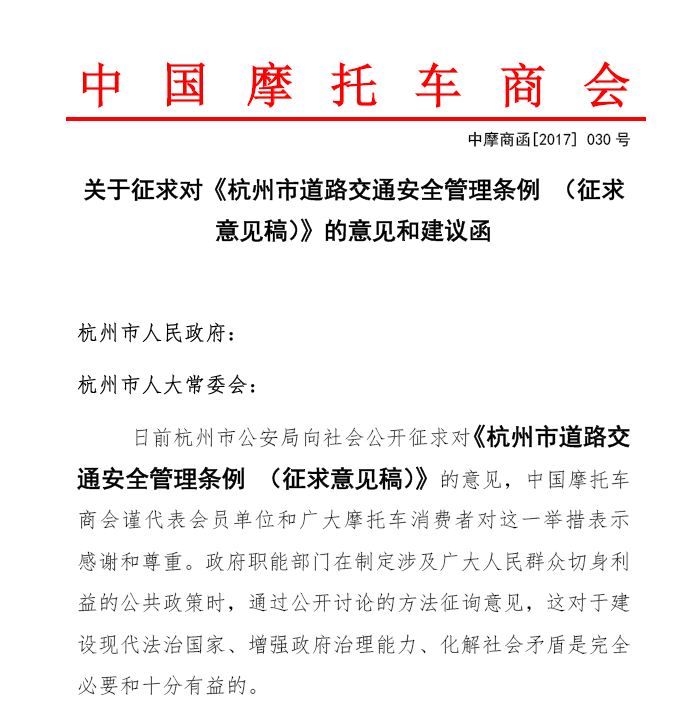 中国摩托车商会作为全国性的行业组织,作为行业和政府沟通的桥梁,去年曾两次致函给广州市人大和政府反映行业诉求,此次又代表行业发出声音,希望引起相关政府的重视和解决。