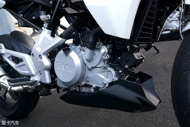 G 310 R搭载一台排量为313cc的单缸水冷DOHC发动机,这款发动机的最大功率为25kW(34Ps)/9500rpm,最大扭矩为28Nm/7500rpm。