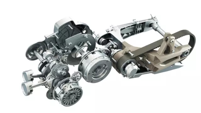 倒立式液压前叉直径为41毫米。前制动采用了Brembo直栓式卡钳,还配有Bosch 9.1 ABS防抱死制动系统。后皮带轮裸露在外,这看起来是个大胆又新颖的设计。