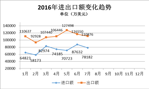 2016年7月内燃机行业出口总金额11.086亿美元,同比下降7.23%;累计出口金额76.53亿美元,同比下降8.72%。