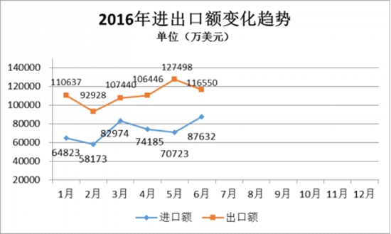 2016年6月内燃机行业出口总金额11.66亿美元,同比下降2.69%;累计出口金额65.65亿美元,同比下降8.70%。