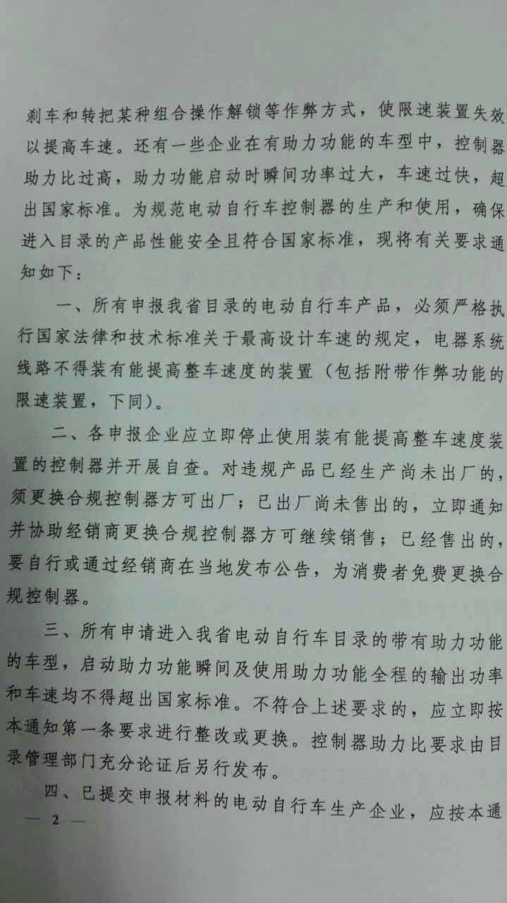 《关于加强电动自行车控制器管理的通告》详文如下: