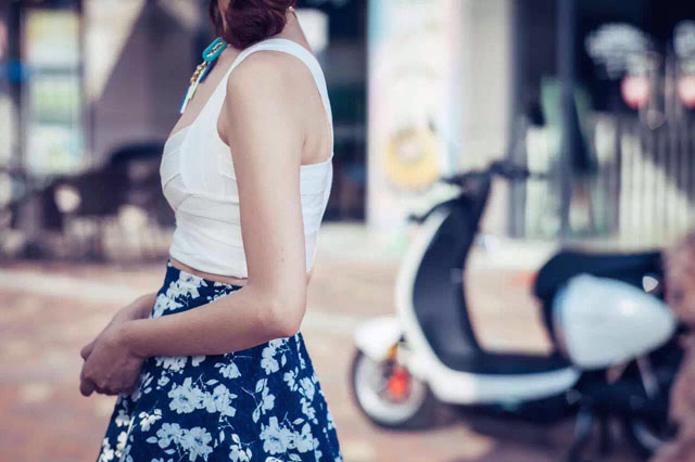 侧面看,车身线条上翘,并缩小了车身尺寸,缩小座箱,前踏板色块与座箱色块的结合处,显得设计感十足。整车造型显得非常可爱。