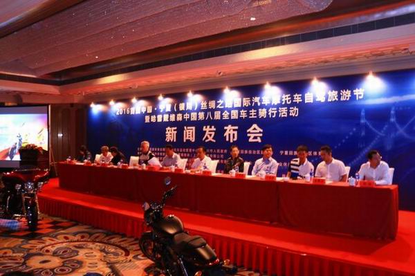2016年6月6日下午,首届中国宁夏(银川)丝绸之路国际汽车摩托车自驾旅游节暨哈雷戴维森中国第八届全国车主骑行活动在北京召开新闻发布会。来自新华社、人民日报等40家在京新闻媒体和新浪、网易等10余家网络媒体,20家汽车摩托车俱乐部、20家北京旅行社代表等参加新闻发布会,北京市朝阳区旅游委、携程网、姚基金、智美体育集团、中体竞赛管理有限公司、阿里体育集团应邀请参加新闻发布会,两届羽毛球奥运女单冠军张宁作为特邀嘉宾也来到活动现场。