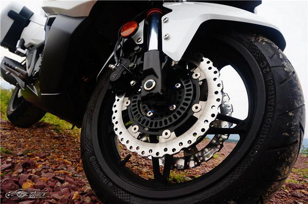 650TR-G真是一身名牌啊!奥地利进口的WP倒立式液压前叉还带有预载可调功能、德国马牌轮胎、西班牙的JJUAN(西互)制动卡钳、德国大陆的ABS防抱死制动系统。怎么样,进口车也有些望尘莫及吧?看似对整车设计意义不大,但会让你在骑行中深有体会。
