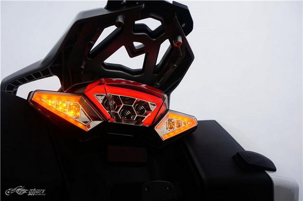 这样的尾灯设计,即使在同级别的进口车型里,也很少能有与它媲美的车型吧?跟在它后面骑行一定是一件很幸福的事。带有LED光带的尾灯和透明灯罩与车头一样极富科技感。