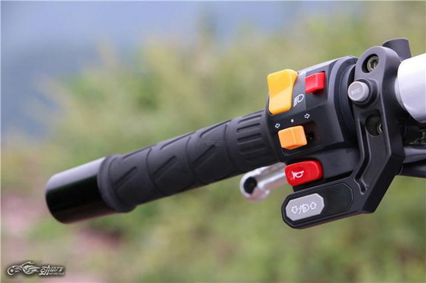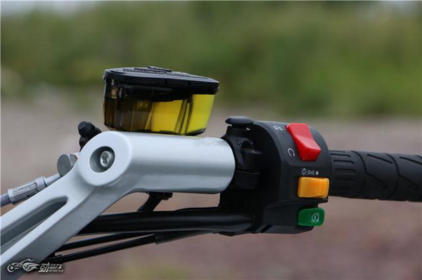 控制总成上的按键被不同颜色所区分,在骑行中很好分辨各按键所对应的功能。车把的握感非常舒适,在这里一定要给个“赞”,就连前制动油壶都非常精致,如果不和摩托车联系到一起,我甚至会以为它是一瓶香水。