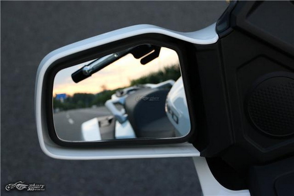 后视镜位置起初会有一些不适应,但从图中你可以看到它的可视面积非常大,这让我在转弯、并线时非常踏实。而这个“大家伙”的“体重”也不小,低速掉头时很 容易出现倒车的情况,而宽于车身的后视镜就充当了防摔柱的“角色”,但我在试驾会看到了多次车辆摔倒的情况,而摔掉的后视镜可以很轻松地复原,可见春风在 用料上一点也不吝啬。